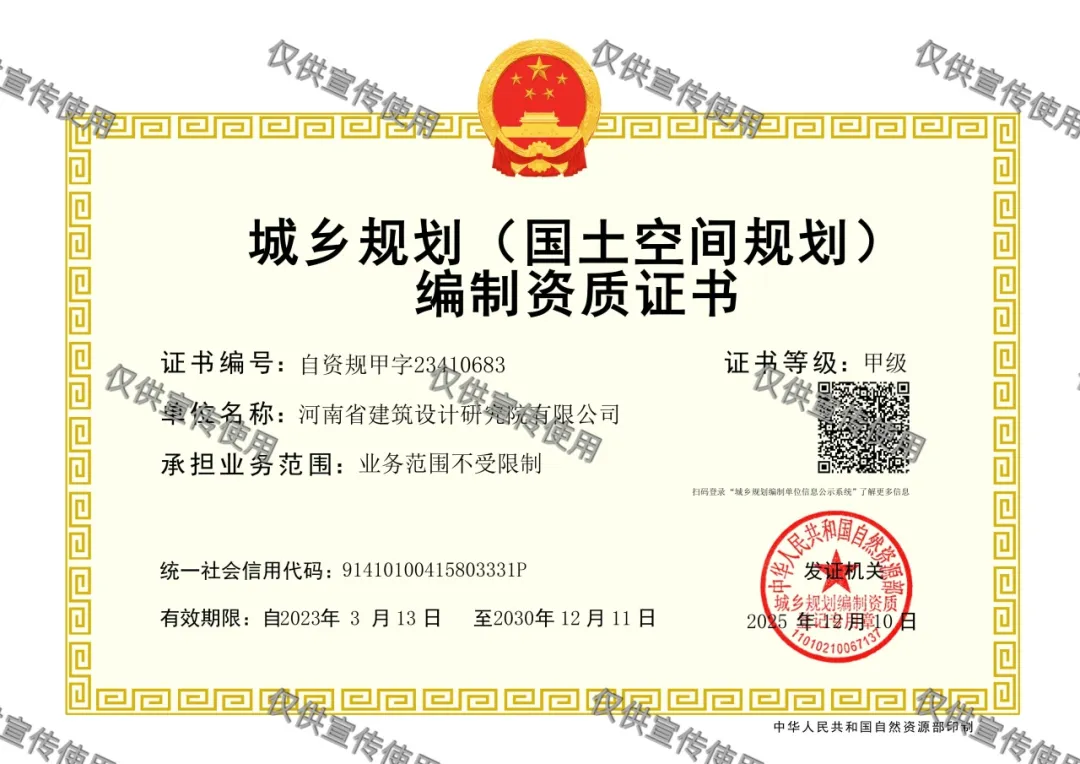 近日,經(jīng)自然資源部審核批準(zhǔn),河南省建筑設(shè)計(jì)研究院有限公司順利通過資質(zhì)審核,成功延續(xù)城鄉(xiāng)規(guī)劃(國土空間規(guī)劃)編制甲級(jí)資質(zhì)。