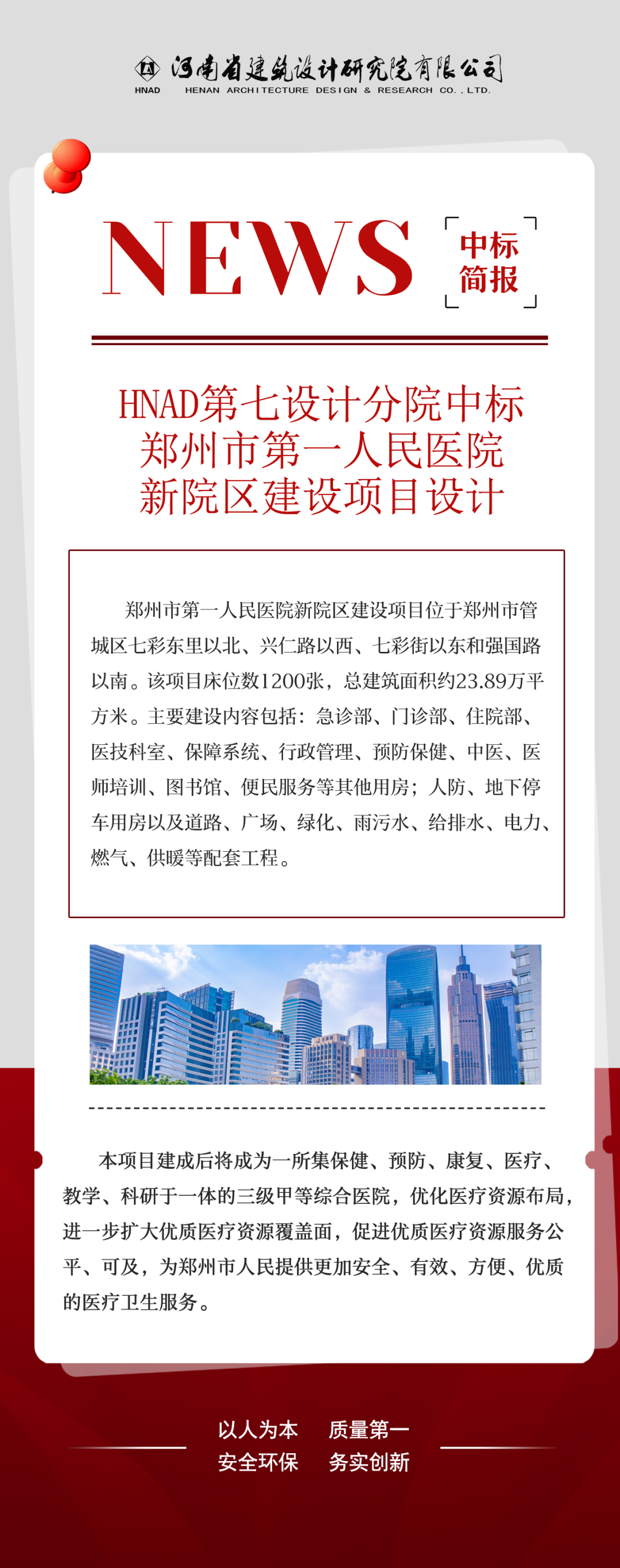 HNAD 簡訊 | 第七設計分院中標鄭州市第一人民醫(yī)院新院區(qū)建設項目設計
