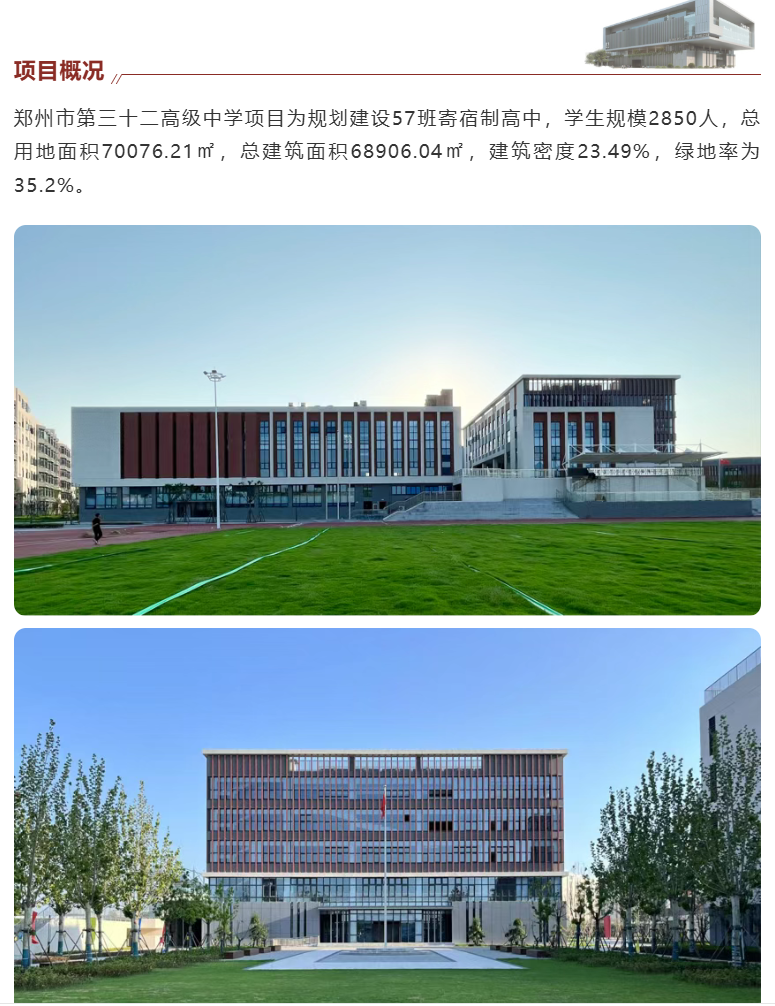 近日,由鄭州路橋建設(shè)投資集團(tuán)有限公司代建,由河南省院承擔(dān)設(shè)計(jì)工作的鄭州市第三十二高級(jí)中學(xué)項(xiàng)目圓滿竣工并順利通過(guò)驗(yàn)收。該項(xiàng)目自交付以來(lái),憑借卓越的設(shè)計(jì)品質(zhì),獲得了鄭州市教育局及校方的高度評(píng)價(jià)與一致認(rèn)可。作為鄭州市重點(diǎn)教育工程,該校將于今年秋季正式投入使用,屆時(shí)將迎來(lái)首批入學(xué)新生。該項(xiàng)目的成功落成,不僅標(biāo)志著鄭州市教育事業(yè)發(fā)展邁上新臺(tái)階,更有效優(yōu)化了二七區(qū)教育資源配置,為二七區(qū)教育現(xiàn)代化進(jìn)程注入了強(qiáng)勁動(dòng)力。