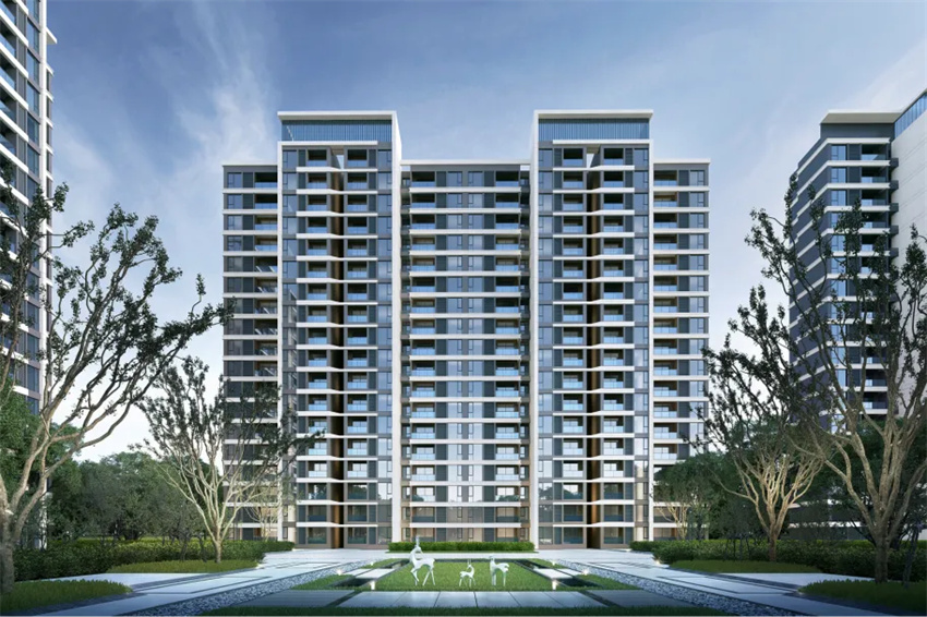 項目容積率1.0-2.9,建筑限高80米,建筑密度小于25%,配建12班幼兒園,綜合服務(wù)中心。幼兒園均布置在南側(cè)道路與城市支路交叉口位置。綜合服務(wù)用房用地及交通條件獨立,便于后期使用。地面機動車沿用地外圍布置,機動車出入口結(jié)合項目入口設(shè)置,地面及地下非機動車停車區(qū)的出入口及坡道均結(jié)合小區(qū)出入口布置,實現(xiàn)人車分流。幼兒園、商業(yè)等配套不僅考慮社區(qū)使用便捷性,還與周邊社區(qū)及學(xué)校相融合。歸家大堂結(jié)合商業(yè)及人行動線設(shè)置,對望社區(qū)景觀核心區(qū)。地塊采用經(jīng)典的灰白配色,構(gòu)圖對稱,設(shè)計鐘采用T型交錯的構(gòu)成手法,增加了建筑立面的變化,強化了設(shè)計的現(xiàn)代感。