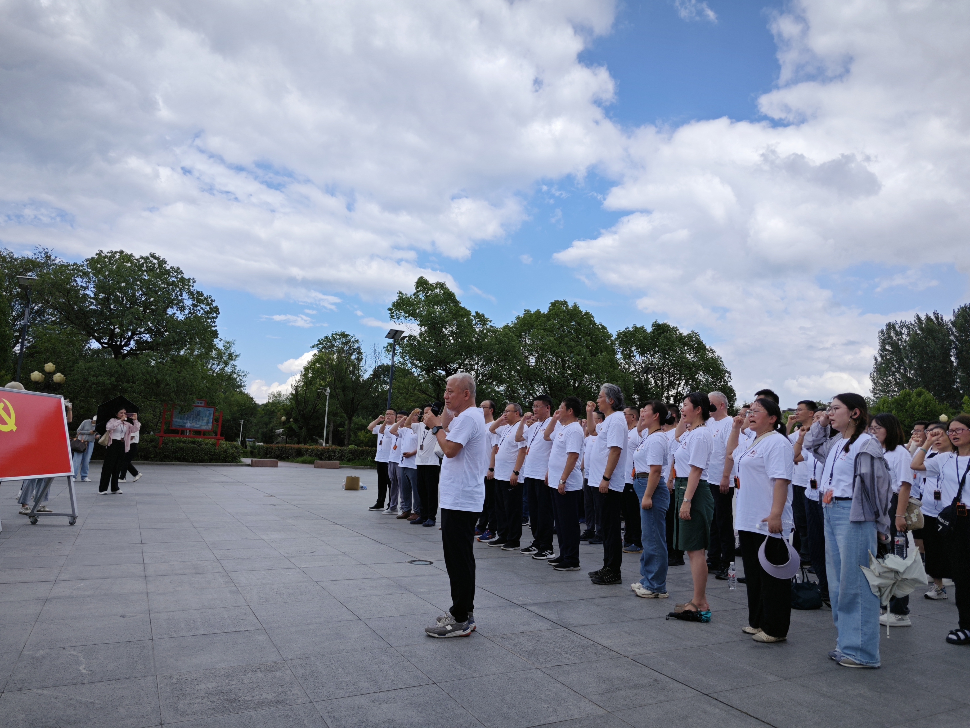 現(xiàn)場(chǎng)教學(xué)環(huán)節(jié),員工前往桐柏英雄紀(jì)念館進(jìn)行學(xué)習(xí)。活動(dòng)伊始,公司黨委書記、董事長(zhǎng)安杰帶領(lǐng)全體黨員在雕像前,面對(duì)黨旗重溫入黨誓詞,用鏗鏘有力的誓言表達(dá)對(duì)黨的忠誠和對(duì)先烈的敬畏。