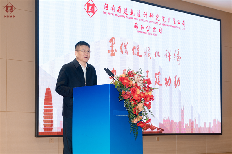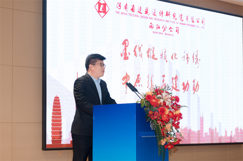 河南省建筑設(shè)計(jì)研究院有限公司董事長安杰、總經(jīng)理張映珍致詞,宣讀任命文件并向南陽分公司總經(jīng)理陳春強(qiáng)頒發(fā)聘書,共同寄語南陽分公司在新的征途上踔厲奮發(fā)、篤行不怠,不斷開拓創(chuàng)新,再繪宛城新藍(lán)圖。