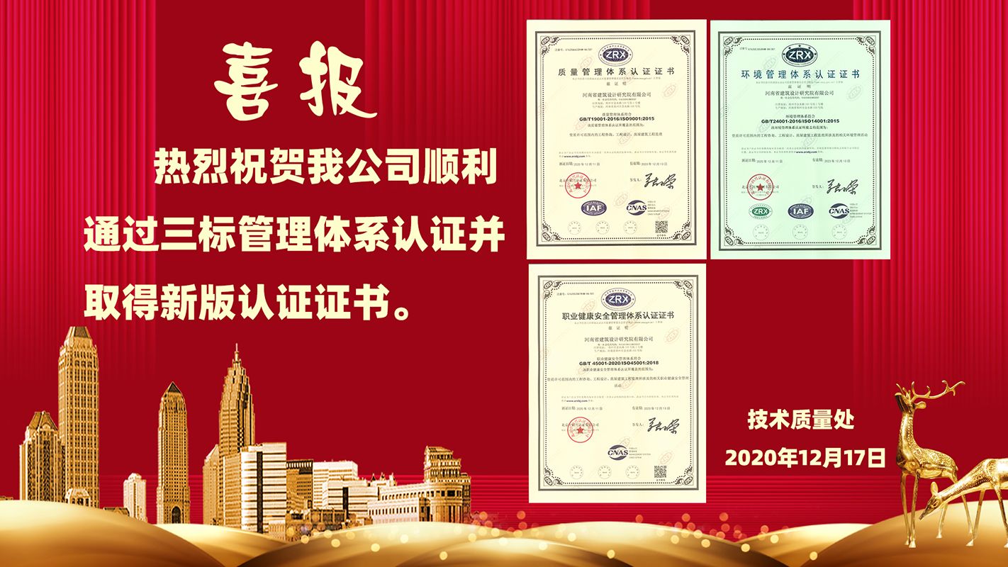 熱烈祝賀我公司順利通過(guò)三標(biāo)管理體系認(rèn)證并取得新版認(rèn)證證書