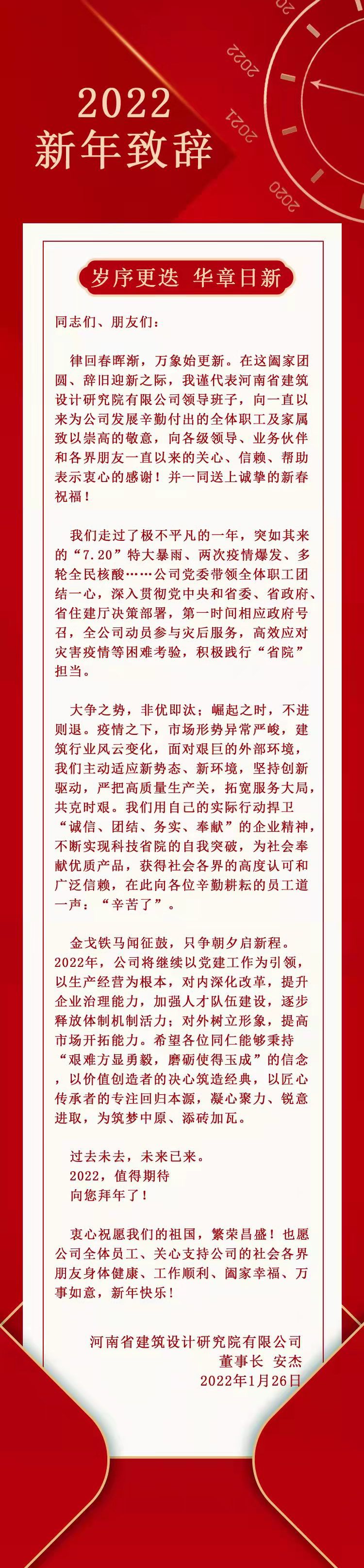 河南省建筑設(shè)計(jì)研究院有限公司2022新年致辭