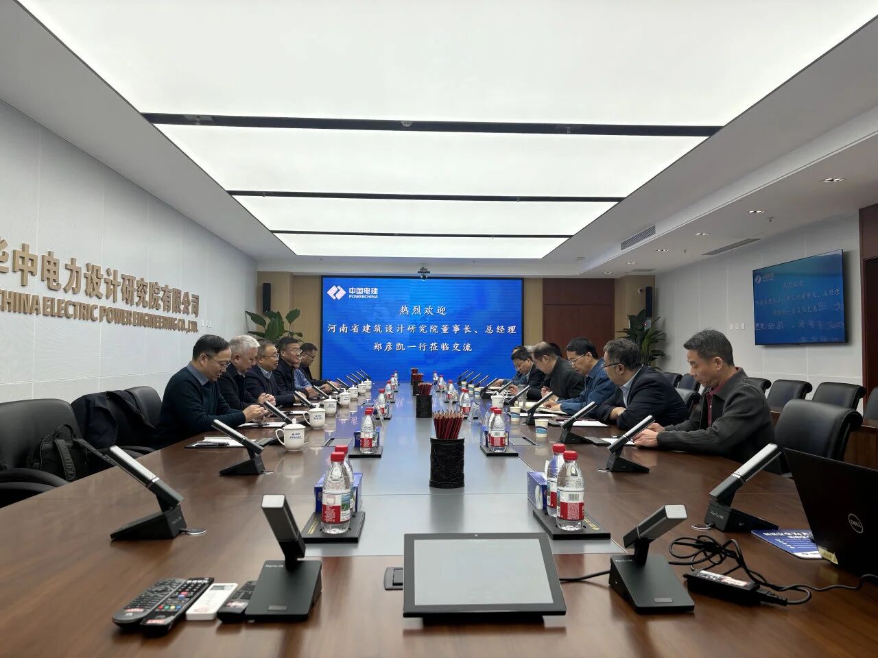 參觀結束后,雙方舉行座談。雙方分別介紹各自業(yè)務板塊,就戰(zhàn)略合作展開深入交流,中國電建集團華中電力設計研究院有限公司分享了辦公樓建設、搬遷過程中遇到的問題、成功經驗及注意事項。與會人員一致認為“遠親不如近鄰”,雙方總部相距不足一公里,是天然的“好鄰居”“好伙伴”。此次調研是雙方在新階段深化戰(zhàn)略協同、共促高質量發(fā)展的重要契機。未來,雙方將建立常態(tài)化溝通機制,實現經驗共享、優(yōu)勢互補、聯合創(chuàng)新,推動合作再上新臺階。