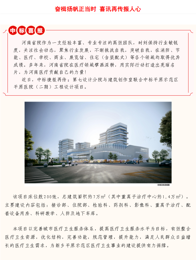 HNAD 喜報(bào) | 我公司第七設(shè)計(jì)分院與建筑創(chuàng)作室聯(lián)合中標(biāo)平原示范區(qū)平原醫(yī)院(二期)工程設(shè)計(jì)項(xiàng)目