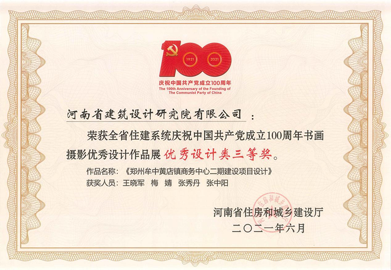 《鄭州牟中黃店鎮(zhèn)商務(wù)中心》榮獲優(yōu)秀設(shè)計(jì)類(lèi)三等獎(jiǎng)