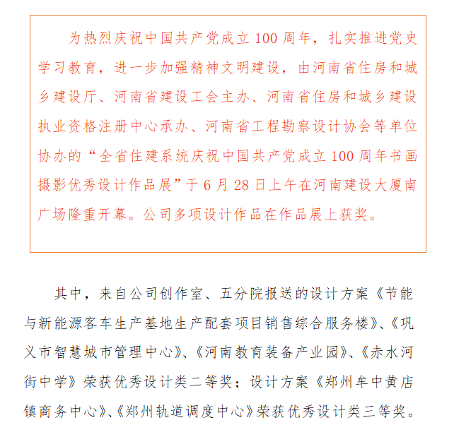 《河南教育裝備產(chǎn)業(yè)園》榮獲優(yōu)秀設(shè)計(jì)類(lèi)二等獎(jiǎng)