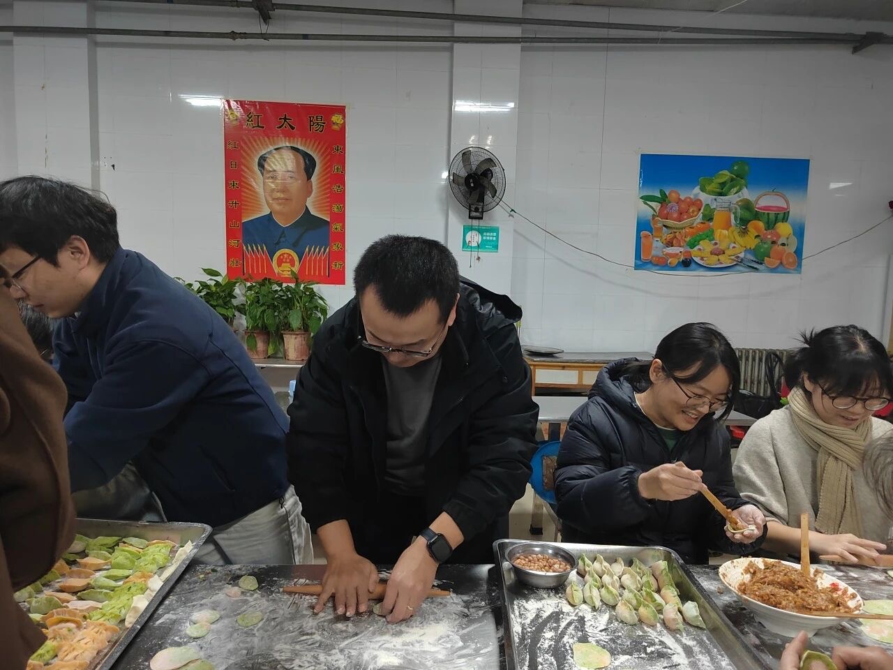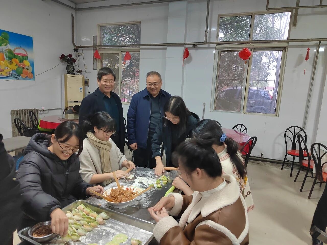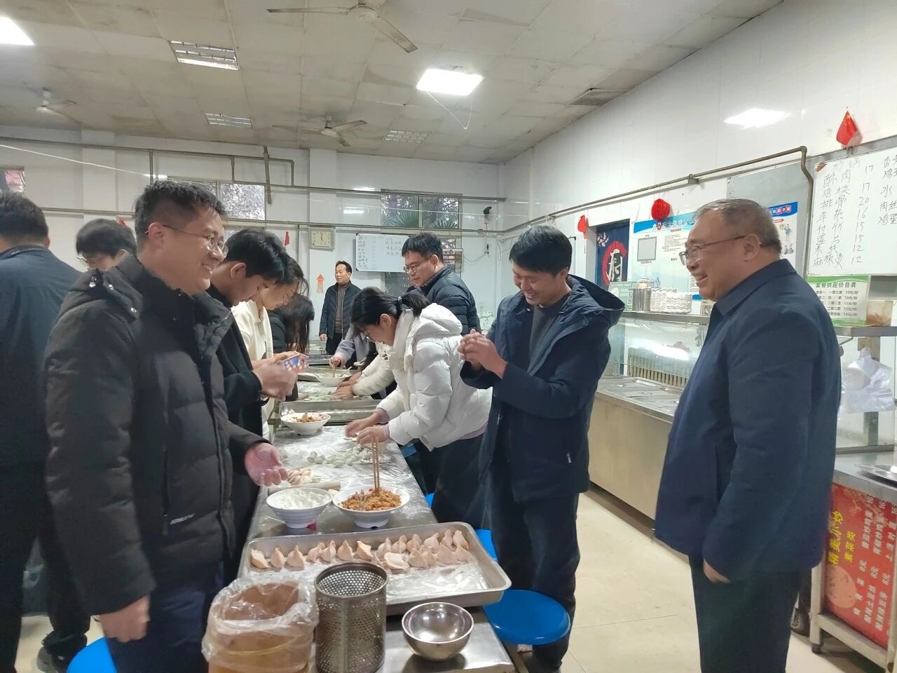熱氣騰騰的餃子出鍋后,香氣滿堂。公司董事長、總經(jīng)理、總建筑師鄭彥凱,公司黨委書記、董事、財務總監(jiān)韓兆海代表公司管理層與員工圍坐一起,共享勞動成果,暢聊生活趣事。
